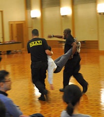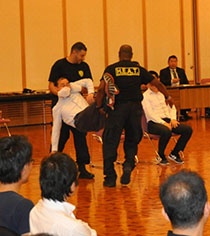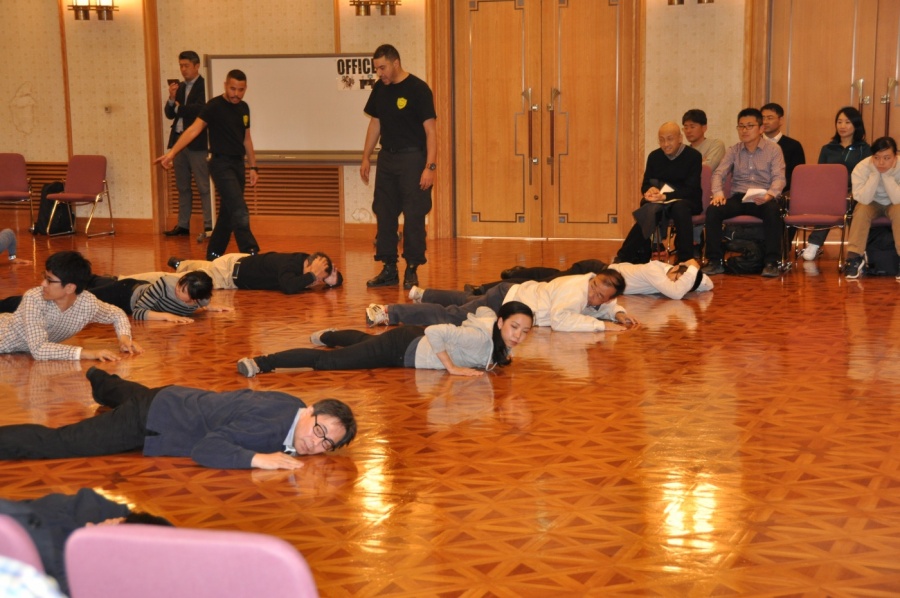 テロや襲撃は日本では身近ではないが、実際に遭遇した場合にはまず逃げる、逃げられなければ隠れる(Run or Hide)という判断を瞬時にし、判断すると同時に行動に移すのが大切と教わる。だがやってみるとどうしたらよいか立ちすくんでしまう。心臓マッサージを交代で連続して行ったり、専用の止血帯を使ったりするなど実際的な訓練もあったが、十分な硬さで適切に固定するのは難しい。お土産物屋で買い物をする設定では、値段交渉をしていたら一瞬で口をふさがれて体が浮き、見事に誘拐されてしまった。全くの想定外で恥ずかしい限り。やはりこのような訓練を体験することが大切と感じた。
