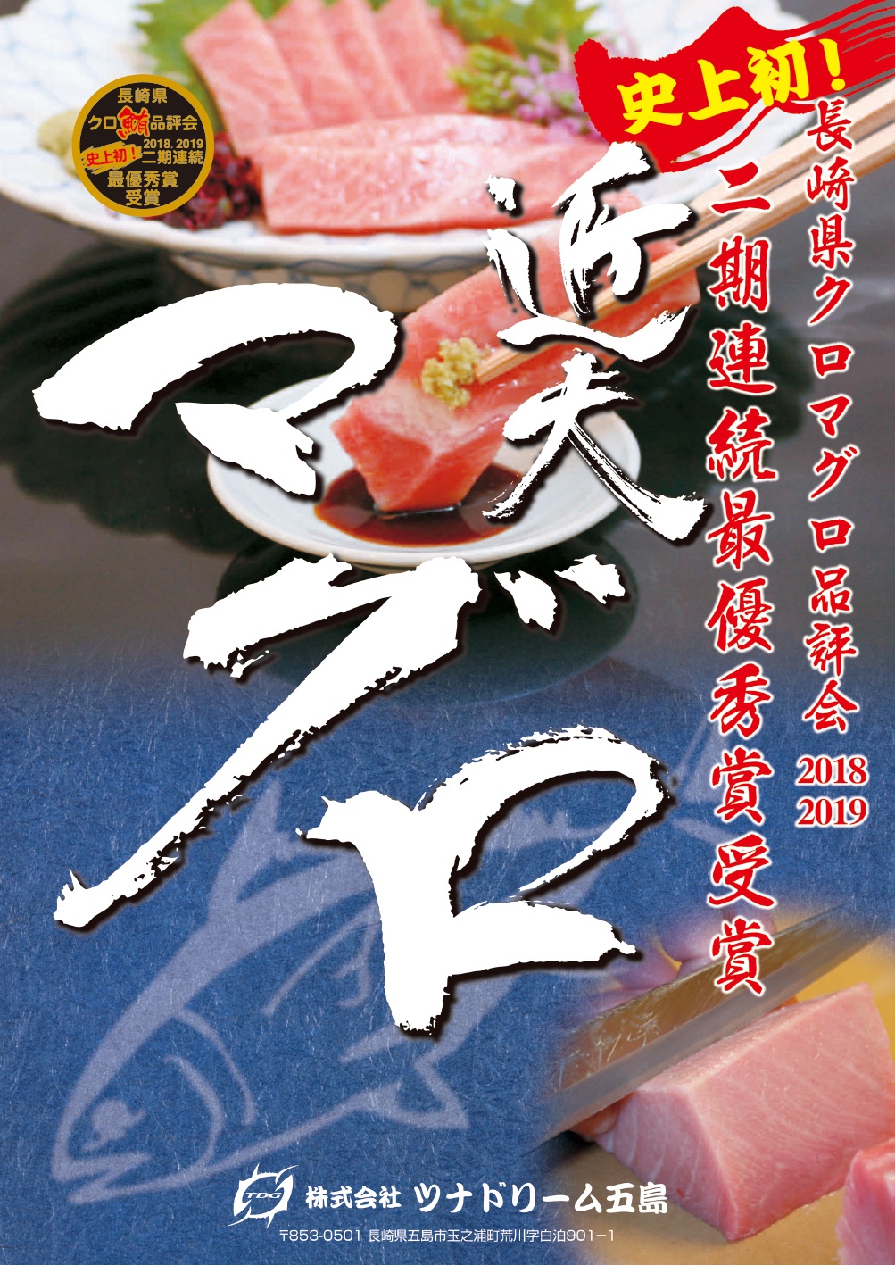 また、継続育成(ヨコワを成魚サイズまで4年の歳月をかけて育成し、育成期間中の斃死率、給餌量、魚体重の増加スピードなどを把握、問題点を見つけ出し、種苗生産に生かすこと)で「カイゼン」を繰り返しながら成魚を養成しています。「長崎県の旨(うま)い本マグロまつり」品評会では、ツナドリーム五島で養成したクロマグロが、2018年度に続き、2019年度も「最優秀賞」を受賞し、史上初の2期連続受賞を達成しました。同品評会は、天然由来の養殖クロマグロと人工種苗の完全養殖クロマグロが混在した中で評価を受けるもので、水産研究の専門家・一般審査員の約30人が、刺し身の色合い・食感・味・見た目の鮮やかさを点数で評価し、各出品者がその合計点数を競い合います。2期連続受賞により、完全養殖クロマグロのおいしさが天然由来の養殖クロマグロに勝るとも劣らないということを証明できたと考えています。また、ツナドリーム五島とツナドリーム沖縄で養成されたクロマグロは「近大マグロ」ブランドの認定を近畿大学から受けており、完全養殖のコンセプトとブランドとしての希少価値、そしておいしさを評価いただいた国内外のお客さまに販売しています。