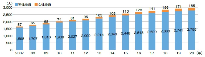 ABIC設立当初から事務局長代理を務め、4代の事務局長のもとで縁の下の力持ちとして支えていたのは、貿易会から出向されていた女性でした。事務処理をはじめ、女性目線でのきめ細かいコーディネーターや会員への対応など、ABICの発展に尽力されていました。しかし、ABICの女性会員について見てみると、2020年8月末現在で188人、全体の6.3%にすぎません。さらにそのうちの商社出身者は32人、17%です。2004年第9号の「ABIC Information Letter」に私が初めて寄稿した文章が残っています。私立の高等学校から、女性講師によるキャリア形成についての講義を要請され、コーディネーターであった私に声が掛かりました。当時初登壇ということもあって、大変充実感の得られた活動でしたが、その際の感想として、「もっともっとABICに女性会員が加入して欲しい」という締めくくりでした。20年たっても増えていないということですね。