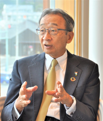 菅原:当市は東日本大震災の被災地であり、特に津波で大きな被害が出ました。まちは壊滅的な打撃を受けまして、将来どのようにまちを興していくか本当に思い悩んでいたところに、村井嘉浩宮城県知事からの復興支援の依頼を住友商事さんと三井物産さんに快諾いただいたことがきっかけです。特にバックアップしていただいたのは鹿折(ししおり)地区での水産加工の復興と新しい組合の発足です。今では当市の復興のモデルケースの一つになっており、これまでのご支援に大変感謝しています。