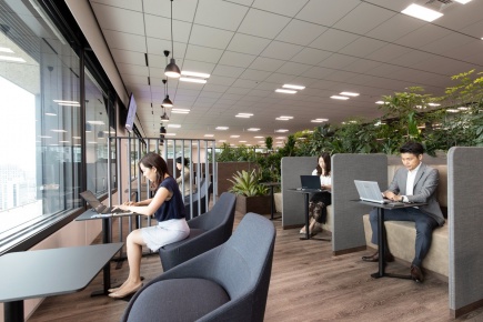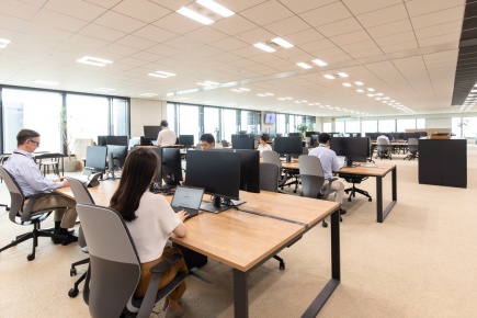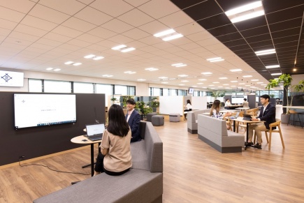 全社単位(約4,500人)で本部ごとの本拠地を設けたフリーアドレス(グループアドレス)を導入し、業務・プロジェクトニーズに応じた機動的なチーミングを実現している。移転前からグループアドレス・トライアルを実施し、これによりペーパーレス化やモバイル活用も加速したため、コロナ禍で在宅ワーク中心の働き方にもスムーズに移行できた。