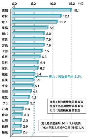水産業、水産加工業も伝統的にこの地域を支える産業であるが、生産性の向上、販路拡大が課題になっている。また、観光も東北の伝統的基幹産業であるが、震災後減少した国内外からの観光客をどのように引き付けていくかという課題がある。