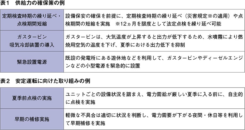 このように厳しい電力需給が継続する中、供給力の大半を担う火力発電所では、安定供給の確保に向け、ソフト・ハードの両面でさまざまな取り組みを行っています(表1・2、図3〜5)。