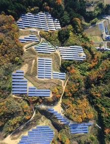 福島県内の案件としては、2014年12月、三峰川電力㈱がいわき市内の遊休眠地を賃借して、出力2.2MWのメガソーラーの運営を開始しました。山間地においても景観を損なわず、効率良く発電できるよう、太陽光パネルを開けている八つのエリアに分散して設置するなど、工夫を凝らして設計しています。年間発電量は、一般家庭約700世帯の年間電力消費量に相当する250万kW/時を見込んでおり、発電した電力は再生可能エネルギーの固定価格買取制度を活用して東北電力へ売電しています。