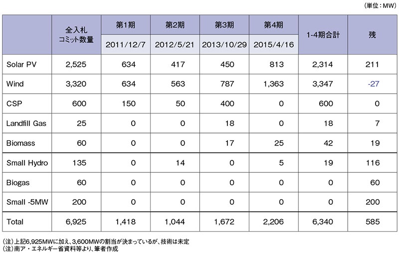 一方で、南アの入札制度は、売電価格を競う方式であり、入札者間の競争により価格が下がり、さらに複数回行われる各入札期ごとに価格低下も期待され、国が補てんする予算も減少していく。また、各入札期とも導入量上限を設定することにより、電力系統への影響にも考慮しながら再エネの導入が進んでいる。