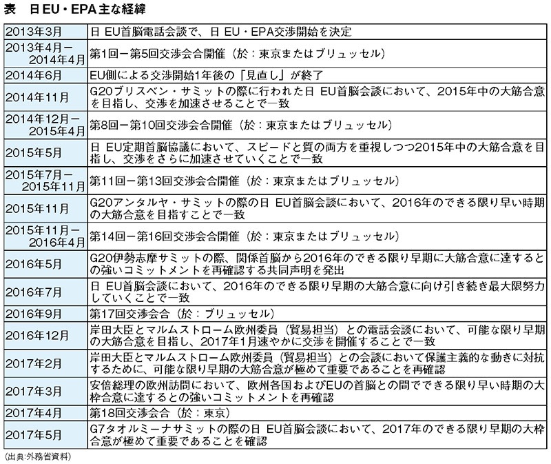 日EU・EPAは、2013年4月の交渉開始から、4年以上が経過している。両政府が当初目標としていた2015年中の合意はかなわず、2016年中の合意目標も先送りした経緯がある。