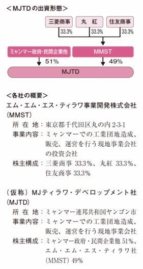 三菱商事は、丸紅、住友商事と共に、ミャンマー連邦共和国のティラワ経済特別区の先行開発エリア「Class-A 地区」の開発プロジェクトについて事業化調査を進めていましたが、今般ミャンマー側官民と共同で、同経済特別区の「Class-A地区」開発の事業主体となる日本・ミャンマー共同事業体を設立し、日本とミャンマーの官民連携プロジェクトとして推進することとしました。