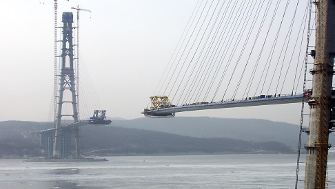 ・首脳会議が開催されるルースキー島と本土を結ぶ橋の建設