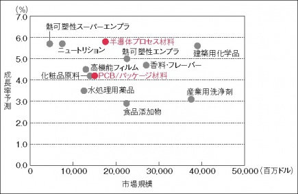この「世界トップ3戦略」は、機能性化学品市場が基本的に BtoB取引である特長に照らしても、理にかなっている。化学企業は、直接顧客である川下産業のニーズをいかに早く正確に把握して製品の開発に着手できるかが、その後のビジネスのアドバンテージを左右する。川下産業の立場からは、ある機能を持った材料のニーズが浮上した際、まずはその製品カテゴリーのトップシェア企業にアプローチするのが常道であり、下位企業はその可能性が低くなる。この序列を壊し、世界トップシェア企業に負けない情報収集力を涵養するためには、何らかの工夫と仕掛けが必要となる。