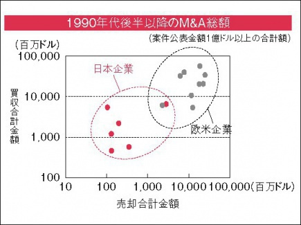 日本企業の好敵手となる欧米企業は、機能性化学品市場において、一般的に、より幅広い分野において、より高い収益率を誇っていると見なされている。その戦略の核心は次の通りである。すなわち、どの製品カテゴリーでも世界シェア 1位 2位 3位を目指し、これに届かないものは事業ポートフォリオから積極的に外していくというものである。表裏一体として、強い製品カテゴリーをより強くするための補強にも経営資源を惜しみなく投入する。結果として、欧米企業の M&Aの動きは日本企業のそれと比較して、文字通り桁違いにダイナミックになっている(図 4)。これにより、企業ごとに独特の事業ポートフォリオが構築され、強い競争力を維持していると考えられる。