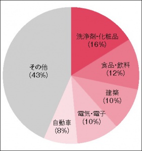 また、日本が強みを持つ機能性化学品市場の分野が、自動車と電機・電子に偏っていることもリスク要因の一つである。日本の機能性化学品産業は、これまで圧倒的な競争力を有していた自動車産業、電気・電子産業と、いわば二人三脚で世界を席巻してきた。しかし、市場をグローバルに見れば、この両分野の割合は決して大きくない(図2、図3)。機能性化学品市場全体の8割以上を占め、日本企業が必ずしも得意としていない残りの分野でいかに存在感を高めていくかも、収益力確模保のための大きなカギとなる。