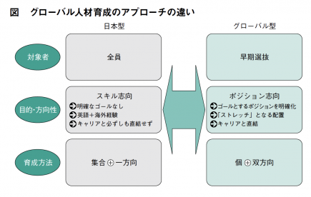 一方、先行してグローバル展開している欧米企業が「グローバル人材」を育成するアプローチは、日本企業とは対照的である。