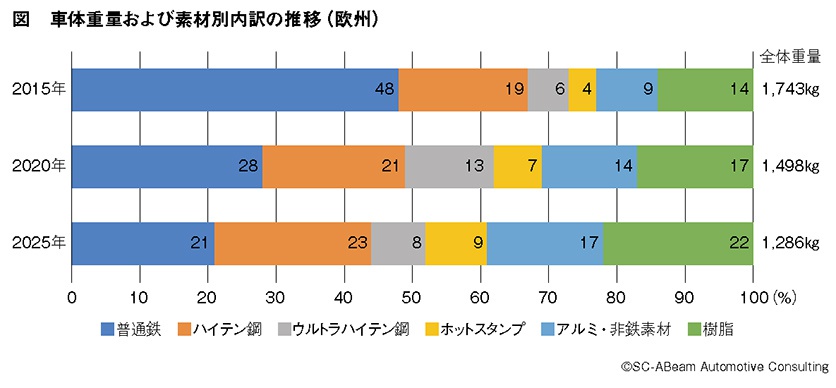 昨今、普通鉄では軽量化に限界があるということからも、前述のハイテン鋼ほかの軽量化素材への需要が高まっています。
