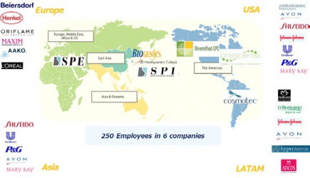 当社は、化粧品素材ビジネスをグローバルに発展させるために 2007年、米国の有力フォーミュレーター「プレスパース」に20%出資しました。世界中にネットワークを持つ当社の出資をきっかけに、プレスパースの化粧品素材ビジネスのグローバル展開が始まりました。米国は世界一の化粧品市場で、世界展開をしている大手化粧品メーカーが多数存在します。米国本社にてある化粧品素材が採用されると、その他の米州、アジア、欧州など米国以外での市場でも、その素材が利用されるケースがよくあり、このため、米国市場で採用されることが、化粧品素材ビジネスのグローバル展開の大きな鍵になります。当社は20%出資参画した 3年後、2010年にプレスパースを100%子会社化し、同時に東京本社に対応組織を設立し、本格的に化粧品素材事業に参入しました。さらに、2013年にはブラジルのフォーミュレーター「コスモテック」に出資参画し、グローバル展開を加速しました。