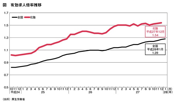 しっかりとした産業基盤を有することから、北陸地区の雇用環境は良好である。概ね全国平均を上回っている。そうした安定した雇用環境から、女性の就業率も高い。その背景には3世代同居率が高く、また待機児童がゼロに見られるように、女性にとって働きやすい環境がある。共働きも多いことから世帯当たりの実収入も高い水準にある。持ち家比率は全国一、1世帯当たり預貯金残高も全国トップクラスである。加えて文科省の実施する「全国体力・運動能力、運動習慣等調査」や「全国学力・学習状況調査」において北陸の児童は上位の成績を収めており、初等・中等教育において高いレベルを維持している。その結果、幸福度調査においても、福井1位、富山2位、石川3位と北陸3県がトップ3を独占している(法政大学坂本研究室2011年11月調査)。