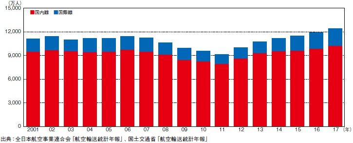 政府は、2020年の訪日外国人数の目標を4,000万人に引き上げ、2030年には6,000万人を目指すとしている。ラグビー・ワールドカップ日本大会や、東京2020オリンピック・パラリンピック等の国家的イベントが控える中、訪日外国人数は年々増加している。また、2011年の東日本大震災の影響を受けて一時的に減少した国内航空旅客数も、2012年度以降のLCC(Low Cost Carrier)参入により増加している。