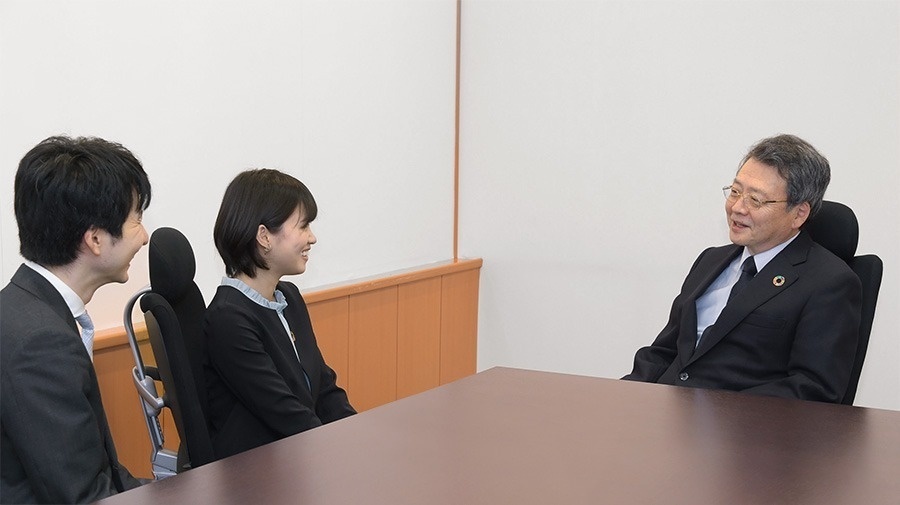 (中央:小林会長、左:渕上、右:乙咩)