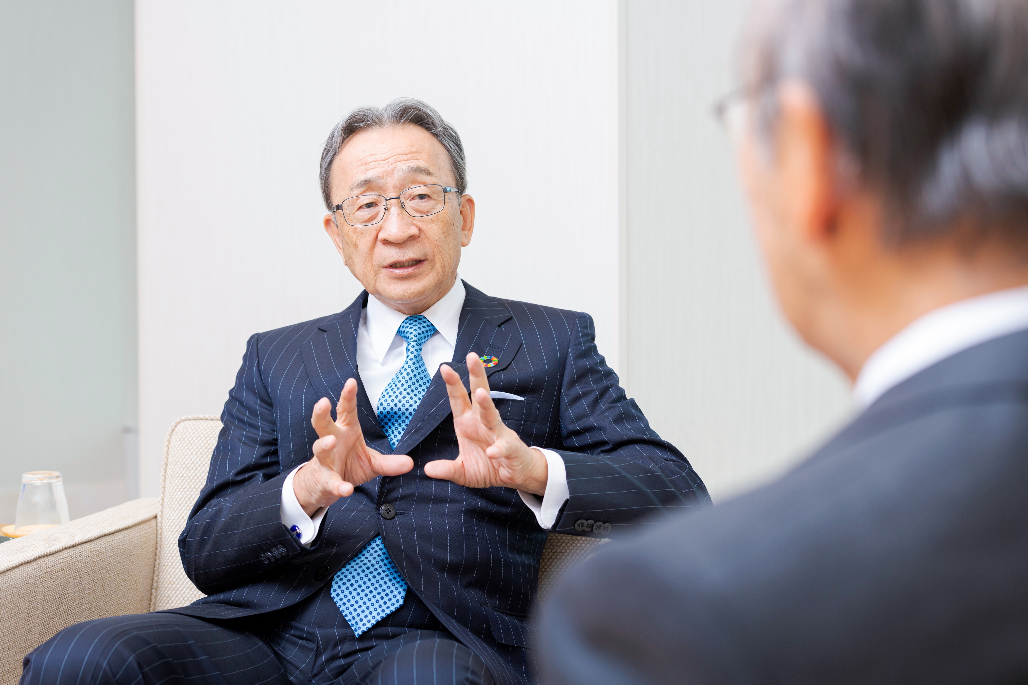 日本貿易会が設立したNPO法人である国際社会貢献センター(ABIC)は今春創設から20周年を迎えました。これを記念した座談会企画として、2020年2月26日に中村(当時)会長が、日本商工会議所の三村会頭を訪ね、社会貢献活動とABICについて語り合いました。その内容の一部は、3月27日付の日本経済新聞朝刊に「シニア人材の活用で、人手不足の解消、地域経済の活性化を後押し」と題する記事広告として掲載されましたが、今回は広告で掲載されなかったやりとりを含め、ABICに関する部分を中心にお届けします。