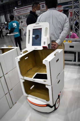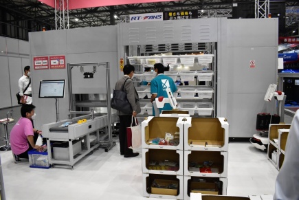 会場で棚ごと搬送する様子を実演する「Ranger™ GTP」