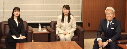 第98回定時総会(5月31日開催)にて当会の代表理事・会長に就任された丸紅株式会社 國分文也会長に、新会長としての抱負やキャッチフレーズに込めた思いなどを当会 河津司専務理事がお伺いしました。