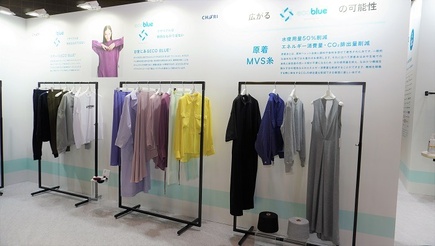 会場では、回収されたペットボトルを使用した当社オリジナルのリサイクルポリエステル糸ECO BLUE