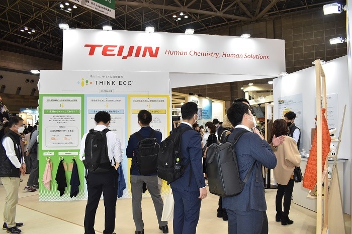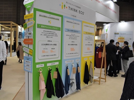 当社は、環境戦略「THINK ECO®」を掲げ、「素材からエコにこだわろう」「きれいな空気と海を守ろう」「省エネな毎日を送ろう」という三つの重点目標に沿って、「ECOPET®」「DELTA® TL」「DELTA® freemo®」「Thermo Fly®」等の環境配慮型素材を紹介した。