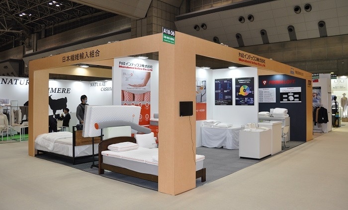 当組合の委員会の一つであるホームテキスタイル委員会企業が、サステナブル製品を紹介する場として同展に参加した。