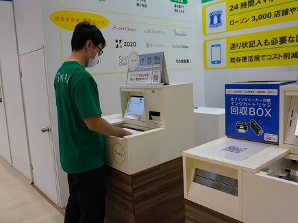 スマリは、関東・中部・関西のローソン等3,000店舗に設置されている専用ボックスから、商品の発送・返品・返却を行うことができるサービス。本サービスは、集荷用の車を新たに手配するのではなく、ローソン等の配送ドライバーが「戻り便(配送終了後の帰路)」を活用して商品を回収する仕組みのため、CO2削減に配慮した物流サービスを実現している。