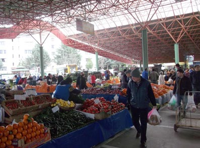 トルコの食の話に話題を移しますと、食事の中心は、羊肉や鶏肉、牛肉ですが、野菜も豊富で、料理のさまざまなバリエーションも、世界三大料理の一つであることを感じさせられます。週末にはファーマーズマーケットが各地で開かれ、新鮮な野菜や果物が並べられ、目を見張るほどの活況でした。基本的にトルコで作られる野菜、果物、水などは、日本の半分ぐらいの値段で買えます。ちなみに、よく物価の指標となるマクドナルドのビッグマックですが、トルコでは3月21日現在、8.5トルコリラ(約400円)でしたので、食料品全ての物価が安いわけではないと思います。