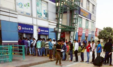 高額紙幣廃止直後、新札を求めてATMに行列を作る人たち