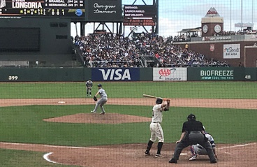 サンフランシスコAT&T パークにて、Giants vs. Dodgers の試合。前田健太投手が投げています