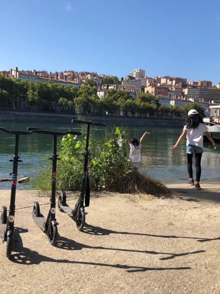 このように、便利な交通機関を持つリヨンですが、この街に来て驚いたのは、キックボード(トロチネット)愛用者の多さです。老若男女問わず、本当によく使われている移動手段です。まだ少数派ではあるものの、ホバーボードやマジックホイールで通勤している人も見掛けます。通勤や通学に使っても自転車と違って場所を取らず、メトロやトラムに乗るときには、畳んで手に持って運べるので便利です。日本では子どもの遊具と思っていましたが、わが家でもすぐに家族全員分のキックボードを購入。私が愛用しているのは、身長190cm、体重100kgまで使用可能な「正真正銘大人用」のキックボードです。