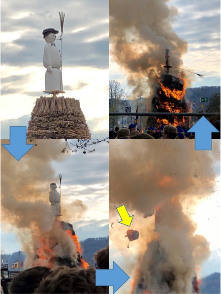 写真3:雪だるまに点火してから頭部が爆発(黄色