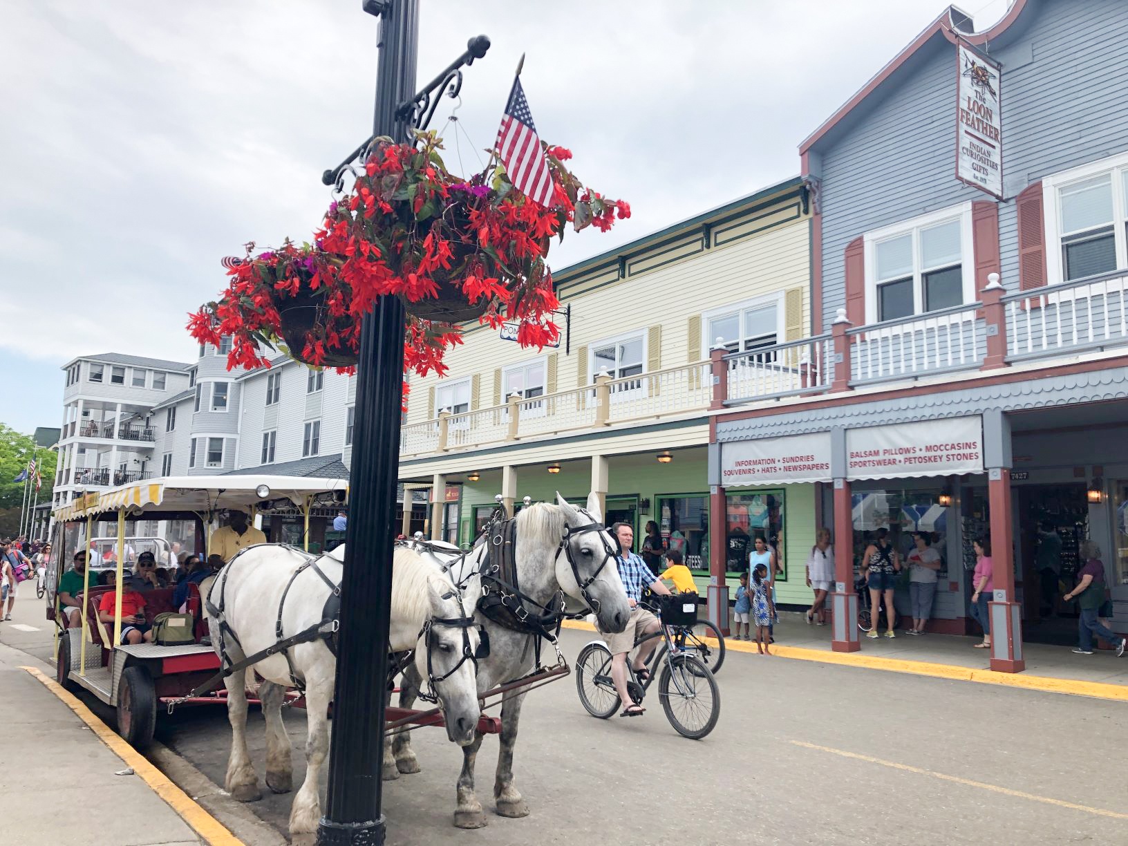 人口の多くは南東部のデトロイト近郊に集中しており、北西部、北部には湖に面したリゾート地や別荘、キャンプ場等が多くあります。夏になると多くの方が海水浴に行くように、湖で泳いだり、ウオータースポーツを楽しんだりします。ミシガン州本土の北端からフェリーで30分ほど行ったところにマッキノーアイランドと呼ばれる有名な島があります。冬場は非常に寒くなるので営業期間は主に5月から9月にかけての間だけですが、人口500人ほどの小さな島に夏の間は常時5,000人を超える観光客が訪れます。この島の最大の特徴は電動の乗り物が一切ないという点です。一周約13㎞の小さな島に船で到着した観光客は全員徒歩、馬車、自転車のいずれかの移動手段で宿に向かい、ゆったりとした時間が流れる島で非日常を楽しみます。
