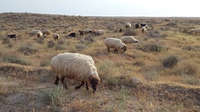 砂漠での放牧:砂漠でも春には草が生え、羊が放牧される