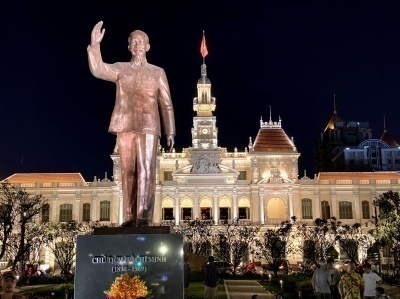 ホーチミン市内の中心・グエンフエ通りのホー・チ・ミン像