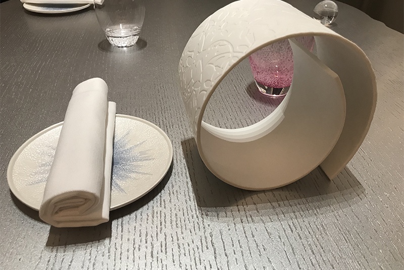 その美術館の近くに、2020年のフランス版ミシュラン・ガイド赤本で三つ星を勝ち取った日本人シェフ小林圭氏のお店、「Restaurant KEI」があります。クリスタルルームのような店内は静かで上品な明るい白。テーブルのセッティングは、シンプルだけどとても洗練されています。スタッフの人数がとても多く、それぞれのテーブル全てに心遣いが行き渡っており、とてもフレンドリーで丁寧に対応してくれます。肝心のお料理は、日本的なフランス料理ではなく、フランス人には作れない日本人の感覚を持ったフランス料理を提供してくれます。世界各国から取り寄せたえりすぐりの食材を活かし、キャンパスに絵を描くように、食べる者の目を楽しませ、驚かせてくれます。小林シェフのスペシャリテである鳩のローストは心の底からおいしいと思い、感動すら覚えました。料理、空間、サービスが三位一体となり、料理だけではない付加価値をつけて、ゲストの心を引き付けるレストラン。そんな小林シェフのレストランに世界中からゲストが訪れ、現在は予約が困難な状況となっており、その点が唯一残念なところかもしれません。