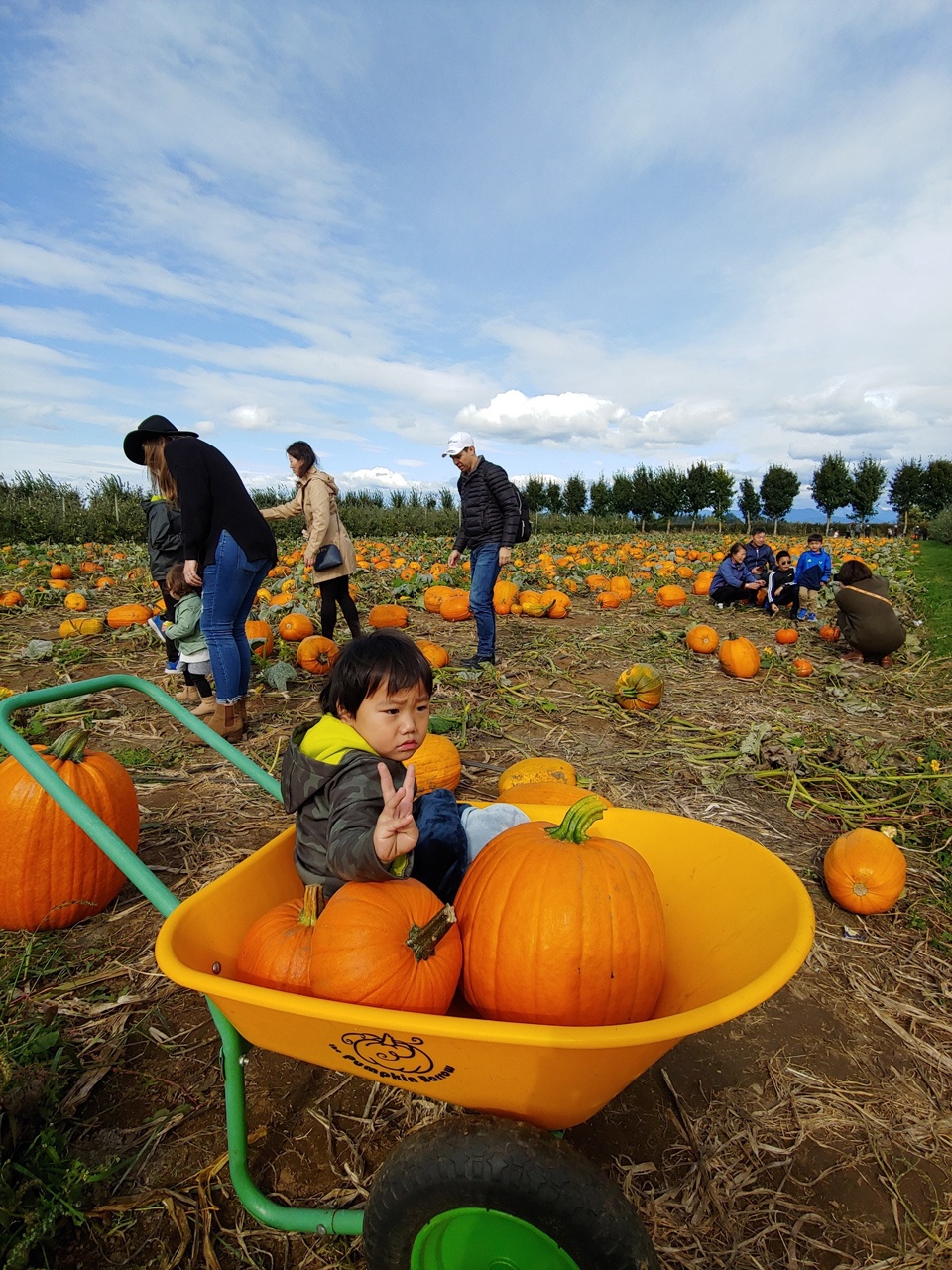 秋になるとサンクスギビング(感謝祭)の季節です。カナダのサンクスギビングは米国よりも1ヵ月以上早く、10月の第2月曜日が祝日となります。サンクスギビングが近づくと街にはあちらこちらでオレンジ色の巨大なパンプキンが見られます。わが家では毎年近くの農家やスーパーマーケットで形の良いパンプキンを買ってきては、中身をくりぬき、好きな顔に削って、ジャックオーランタンを作るのが恒例になっています。くりぬいた中身はケーキやパイにして食べます。