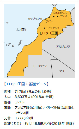 なお、フランスやスペインを含む親欧州、親米国の国であり、イスラエルとも良好な関係を有しています。特に米国との関係は深く、古くは、1776年の米国の独立を世界で最初に承認したのはモロッコであり、米国は苦しい時に最初の友人になってくれたモロッコに親近感を有しています。イスラエルとの関係も歴史的に深いです。古くは、当時イスラム支配下にあったスペインで1492年にレコンキスタによりイベリア半島からイスラム教徒が追い出された際に、同じく多くのユダヤ教徒も追われモロッコに逃げて来てそのまま定住しました。さらに、1890年代に始まるシオニズム運動の流れで、モロッコからイスラエルに戻った人々ともつながっています。それが現在の米国・モロッコ・イスラエルの金融業のつながりとなっています。日本との外交関係はモロッコが独立した1956年に樹立されました。現在、自動車部品製造業や商社など約70社の日系企業がモロッコに進出しています。