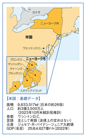 ニューヨークという地名は、人によってイメージする場所が違うということを当地で感じることがあります。例えば、2022年の12月にニューヨーク州西部のナイアガラの滝近くの都市、バファローは猛吹雪に見舞われ犠牲者も出ました。そのことが日本で映像と共に「ニューヨークで大雪」と報道されたところ、ニューヨーク市では全く雪が降っていなかったにもかかわらず、日本に住む家族や同僚から安否を気遣うご連絡をいただいたことがありました。そこでまず、ニューヨークと名の付く地域のイメージ合わせをしたいと思います。