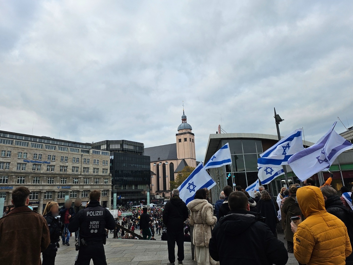 デュッセルドルフやケルンでのプライドパレードや、高級ブランド店の前で動物愛護団体の抗議などさまざまな形を見掛けましたが、最近ではパレスチナのガザ地区への連帯を示すデモをよく見掛けます。「Free Gaza」を掲げる抗議が行われる一方で、道路を挟んだ反対側ではイスラエル支持のグループが主張を発信しているところがドイツらしいなと思いました。双方が向かい合い、警察がそばで常時監視しながらも、平和的に進行しており、生活と政治が密接しているなと感じます。