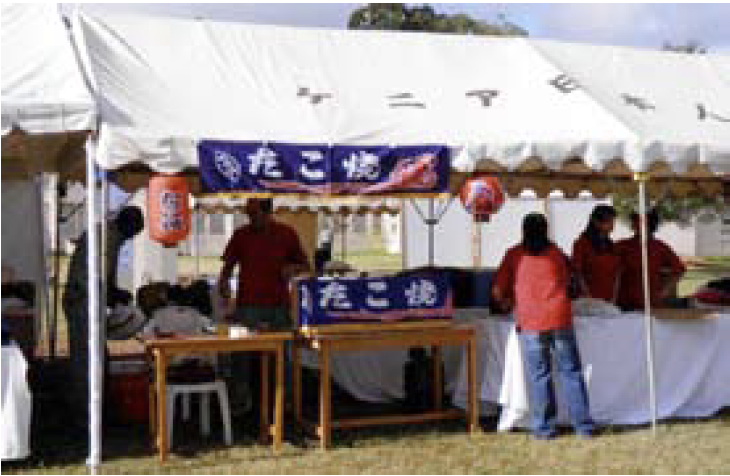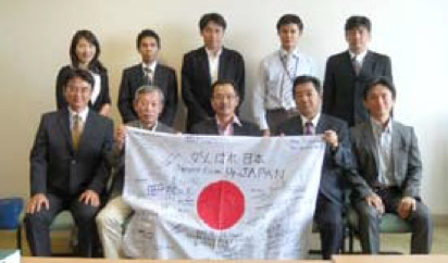日本人会幹事メンバー一同(手に持っている布は東日本大震災