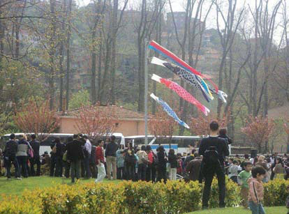 2008年にトルコの大統領として初めて日本を公式訪問されたギュル大統領はその現場にある慰霊碑を訪問されました。それほどにその現場がトルコにとっては原点であり、そこから発せられる「人道愛」の精神には心を開かせられる思いです。その現場(慰霊碑)をいつも見守っていてくれているのが地元の大島小学校の児童の皆さんだということも知りました。イスタンブル日本人学校の児童・生徒さん、大島小学校の児童の皆さんといったこれからの日本を支え、守っていってくれる若い(多少若過ぎるかもしれませんが)人々がトルコとの友好の絆を身をもって体現してくれていることをこの歳になって知ることとなり、恥ずかしくも、頼もしくも思うところです。2011年4月にはイスタンブールにある日本庭園(イスタンブール市政府の公園としての扱い)で日本人学校の児童・生徒の皆さんと共にイスタンブールで初めてのこいのぼりを揚げ、こどもの日を祝うことができました。「日本年」文化事業として、日本茶室・庭園の補修事業を行い、そのこいのぼりポール台とこいのぼりもイスタンブール市に寄贈しました。これから毎年5月にはそのこいのぼりがイスタンブールの空を泳ぐ風景が見られることをうれしく思うとともにトルコの皆さんの思いやりをありがたく思うところです。