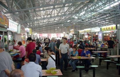 多様な民族や多くの外国人が暮らす国だけあり、食文化も独特の発展を遂げています。シンガポール人の多くは、ほぼ毎食のように外食をします。ホーカー・センターとかフード・コートと呼ばれる屋台村のような施設が至る所にあり、日本円で200-300円という廉価で多様な料理を楽しめます。最も一般的なのは、中国系と他系統の料理が融合したような当地独特の料理で、「ホッケン・ミー(福建式焼きそば)」「バクテー(骨付き豚肉を煮込んだもの)」「ラクサ(ココナツベースのカレー風のスープに入った太いビーフン)」「海南チキンライス」「フィッシュ・ヘッド・カレー」等がよく知られています。その他、各国料理のレストランが高級店から大衆店までひしめきあっています。日本料理も大変な人気で、一説によると600店もあるとか。当然、競争も熾烈で、単に「日本料理」というだけでは差別化されないため、一例を挙げると「沖縄料理」「博多もつ鍋」「富山黒ラーメン」「讃岐うどん」等と特徴を打ち出した店が人気を集めているようです。おすし一つとっても、銀座から来たような超高級店の他、ローカル系の回転ずしのチェーン店もたくさんあり、「シンガポール式」のおすしが回っていて、 いつも混んでいます。