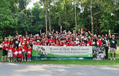 シンガポール支店の職員・家族ら約100名が植樹に参加
