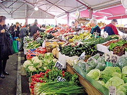 野菜、果物、肉、魚、ワイン、お土産、洋服、フードコート