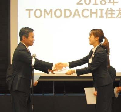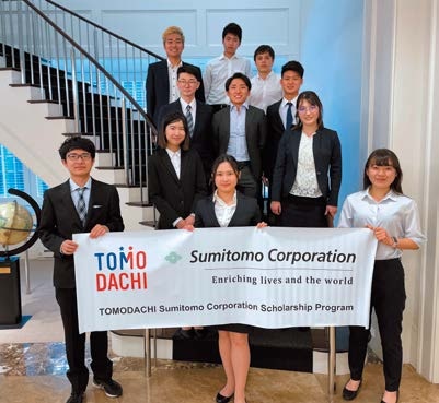 当社は、米国大使館および米日カウンシルが主導する日米交流事業「TOMODACHIイニシアチブ」に参画し、2014年から「TOMODACHI住友商事奨学金プログラム」を実施している。米国の大学に留学する学生の渡航費と生活費を支援する他、留学期間中に米州住友商事会社による研修など、学生がグローバルな視野を広げリーダーシップを学ぶ機会を提供している。さらに、さまざまな経験を持つ当社社員がメンターとなり、学生が目的を達成できるようサポートもしている。