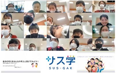 「サス学」は、当社の多種多様な事業活動をケーススタディとした学習プログラムで、社会で起きていることをジブンゴトと捉え、サステナブルな未来をつくるための知恵や価値観を育む探究型アクティブラーニングである。2021年度は、小中高で1校ずつ選定して、初めてオンラインに挑戦。さとえ学園小学校は5年生向けのビオトーププロジェクトに「サス学」を導入。当社社員によるプレゼン動画を視聴し、「自然エネルギー」「サーキュラーエコノミー」などの課題について考え、ビオトープ改善に向けたアイデアコンテストを実施。児童がオンラインでプレゼンしたアイデアを当社社員が講評し、活発な意見交換を行った。先生からは「子どもたちがより広い視野と責任感を持って活動に取り組むようになった」と「サス学」の効果を評価していただいた。今後も当社は「サス学」アカデミーを通し、次世代を担う子どもの「未来を創る力」を育むことに貢献していく。