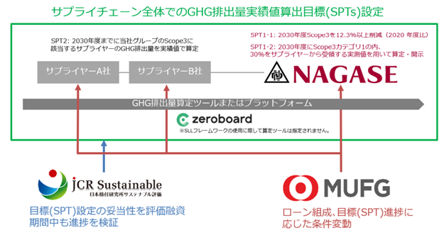 また、令和4年度環境省グリーンファイナンスモデル事例創出事業におけるモデル事例として、当社が運用を予定しているサステナビリティ・リンク・ローン・フレームワークが選定された。従来のフレームワークと異なり、サステナビリティ・パフォーマンス・ターゲット(SPTs)にGHG排出量の一次データ比率を採用している点、また自社のみならずサプライヤーも本フレームワークを活用した借り入れを可能にすることで、サプライチェーン全体でGHG排出量の可視化・削減に向かうように設計されている点が画期的かつ野心的と評価され、採択に至った。